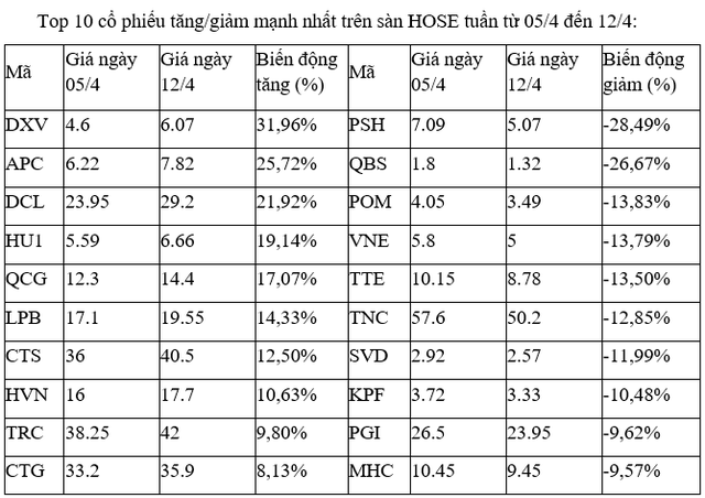 Trên sàn HNX, cổ phiếu DDG tiếp tục giảm sâu, sau tuần trước đó giảm hơn 12%. Trong khi ngược lại, HMR được mua bắt đáy mạnh, trở thành cổ phiếu tăng tốt nhất sàn sau khi mất gần 17% và là cổ phiếu giảm mạnh nhất thứ trên sàn vào tuần trước.