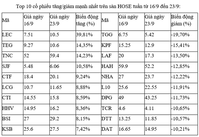 Ở chiều ngược lại, cổ phiếu KPF thêm một tuần bị bán tháo, sau khi tuần trước là cổ phiếu giảm mạnh thứ tám trên sàn với mức giảm 9,23%.