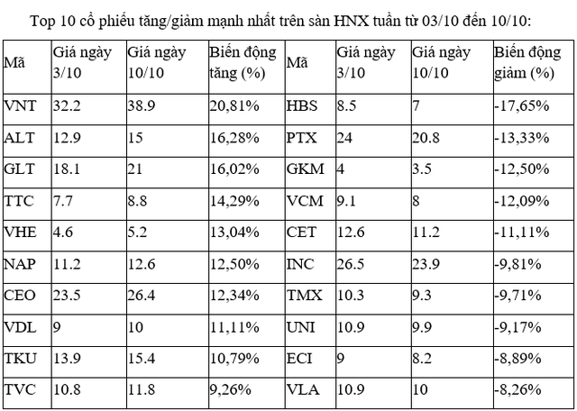 Ở chiều ngược lại, cổ phiếu HBS bị bán tháo sau khi chính thức nhận quyết định đưa vào diện hạn chế giao dịch kể từ ngày 08/10.
