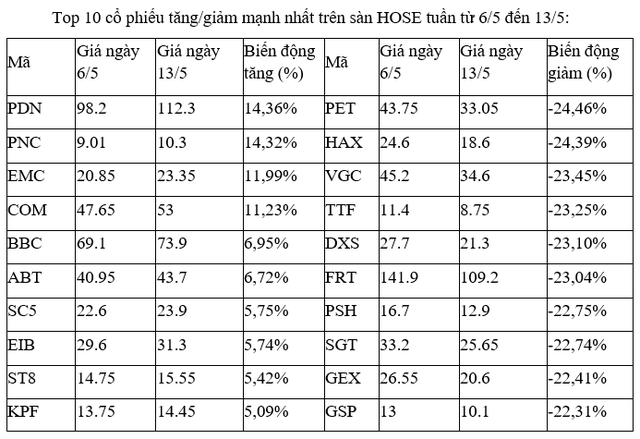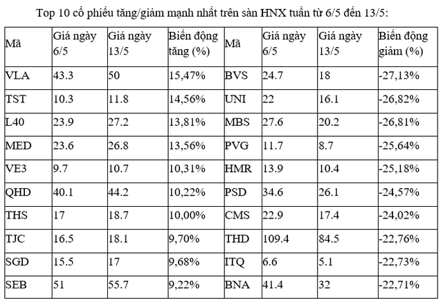 Top 10 cổ phiếu tăng/giảm mạnh nhất trên UpCoM tuần từ 6/5 đến 13/5: