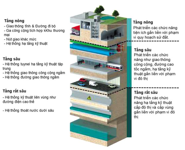 Theo đó, Thành phố sẽ xác định khu nào khuyến khích phát triển, khu nào cần hạn chế, khu nào không được làm theo cả chiều ngang, chiều dọc, chiều sâu. Thành phố cũng tính toán việc kết nối không gian ngầm các công trình với không gian ngầm công cộng.