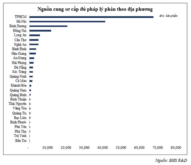 Tiếp theo sau là Bình Dương cung cấp ra thị trường hơn 20.000 căn, Đồng Nai gần 12.000 căn, Cần Thơ và Long An cũng có hơn 5.000 sản phẩm đủ pháp lý…