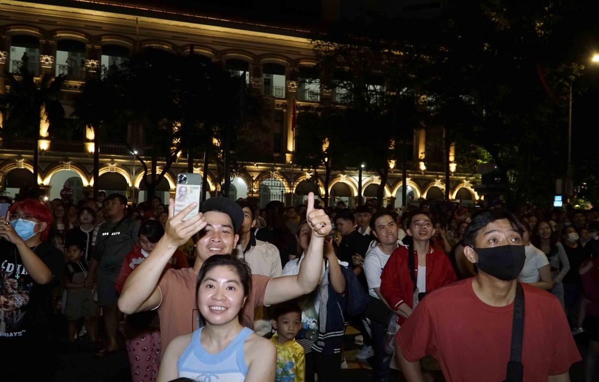 Người dân TP.HCM và du khách đã tụ tập về công viên bến Bạch Đằng, Quận 1 để ngắm pháo hoa, tận hưởng không khí vui vẻ, hạnh phúc trong giây phút chào đón năm mới Quý Mão 2023.