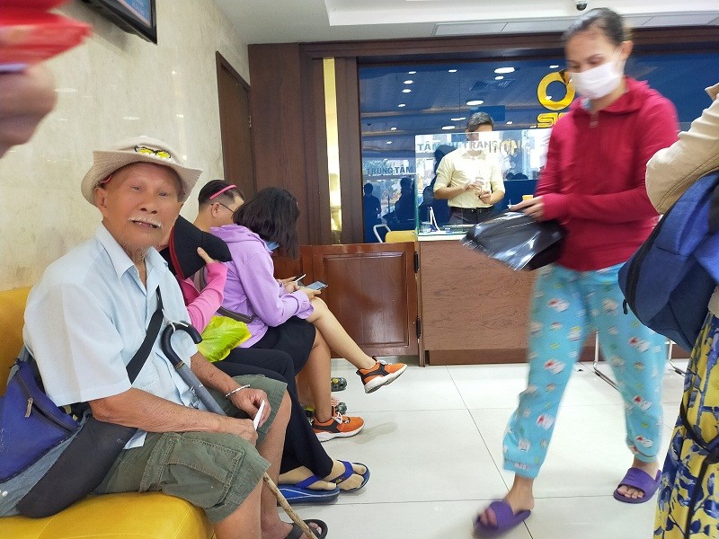 Chú Thảo năm nay 80 tuổi ngồi chờ để mua 1 lượng vàng về tặng vợ.