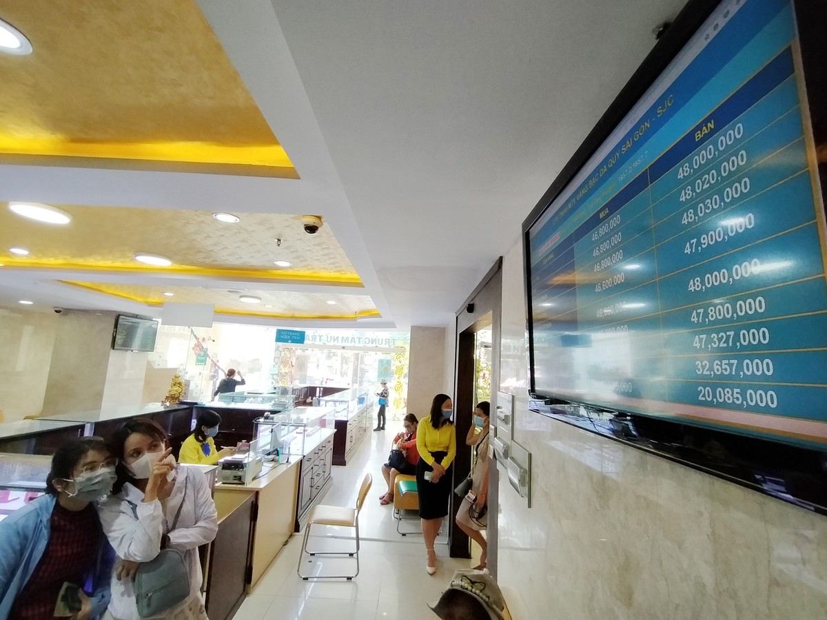 Tại Mi Hồng, giá mua vào là 46,50 bán ra là 48,50 triệu đồng/lượng cho vàng SJC.