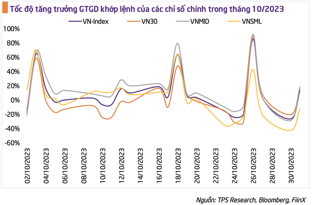 Tuy nhiên, sau nhịp điều chỉnh mạnh trong 2 tháng qua, TPS cho rằng thị trường sẽ dần khởi sắc hơn trong tháng 11/2023 với động lực chính vẫn sẽ đến từ VNMID. Bởi lẽ, VNMID đã có mức chiết khấu hấp dẫn hơn 20% từ đỉnh, trong khi các nhóm ngành chủ chốt của chỉ số như: thép (giảm 45,6%), bất động sản (giảm 46,4%) và chứng khoán (giảm 32,1%), đều đã có mức điều chỉnh vượt xa mức giảm 17,45% của thị trường chung.