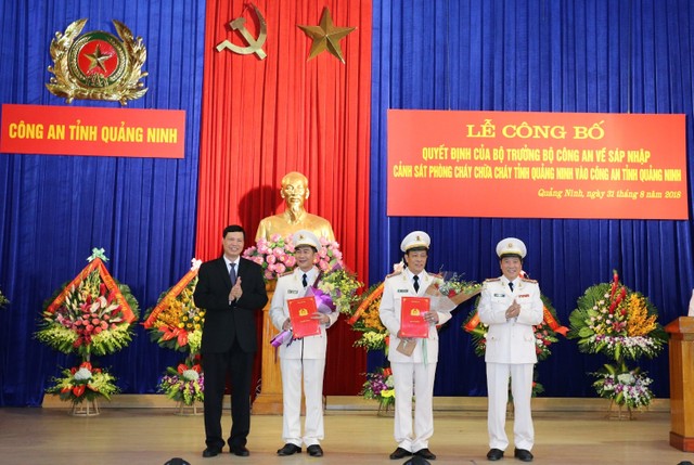 Tại buổi lễ, Công an tỉnh Quảng Ninh đã công bố các quyết định của Bộ trưởng Bộ Công an về việc sáp nhập Cảnh sát PCCC Quảng Ninh vào Công an tỉnh và tổ chức thành Phòng cảnh sát phòng cháy chữa cháy và cứu nạn cứu hộ.