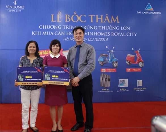 Bên cạnh giải đặc biệt, Công ty Vinhomes cũng đã trao 1 giải nhất là một xe máy Vespa PX 125cc nhập khẩu, 1 giải nhì là xe máy Vespa LX 125cc sản xuất tại Việt Nam. Ngoài ra, công ty cũng trao 2 giải ba là Tủ lạnh Side by Side Samsung; 3 giải tư và 10 giải khuyến khích là Ipad 128GB và Iphone 5S.