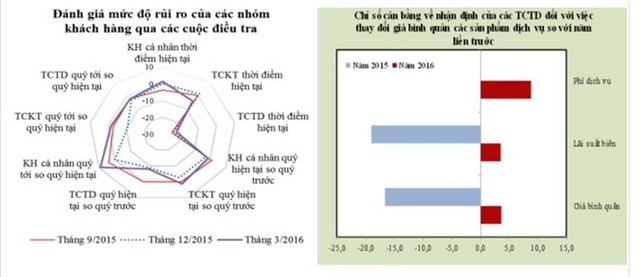 Kết quả điều tra cho thấy, mức độ rủi ro của các nhóm khách hàng của tổ chức tín dụng trong năm 2016 được nhận định có xu hướng giảm rõ rệt so với năm 2015, trong đó giảm mạnh nhất ở nhóm khách hàng là tổ chức kinh tế và các tổ chức tín dụng khác.