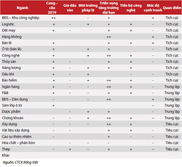 Triển vọng ngành năm 2019 dựa trên 6 tiêu chí đánh giá của VDSC.