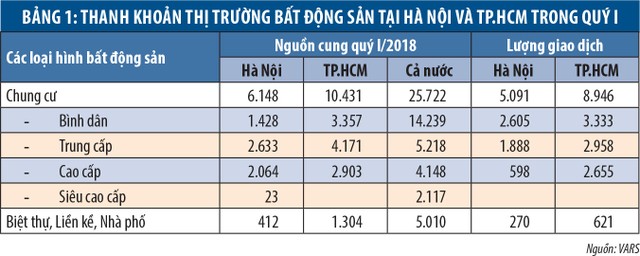 Tương tự, tại TP.HCM, trong quý I/2018, thị trường này ghi nhận nguồn cung căn hộ mở bán đạt 10.431 căn; giảm 34% so với quý liền trước và giảm khoảng 9,5% so với quý I/2017. Tuy nhiên, với 8.946 sản phẩm giao dịch thành công, đây vẫn là con số thanh khoản tốt nhất trong quý I nhiều năm trở lại đây, kể cả quý I/2016 - giai đoạn thị trường chung cư được cho là sốt nóng.