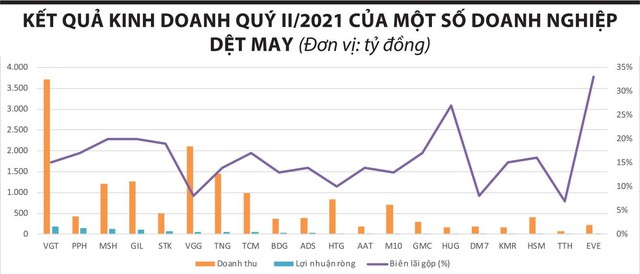 Hưởng lợi từ xu hướng nhu cầu tiêu dùng hồi phục, nửa đầu năm 2021, nhiều doanh nghiệp trong ngành sợi, dệt, may báo lãi tăng trưởng tốt nhờ số lượng đơn hàng và giá bán gia tăng, trong đó những doanh nghiệp lớn đã nhận đơn hàng sản xuất cho cả năm 2021, phục vụ các thị trường xuất khẩu như Mỹ, Nhật Bản, EU, Hàn Quốc...