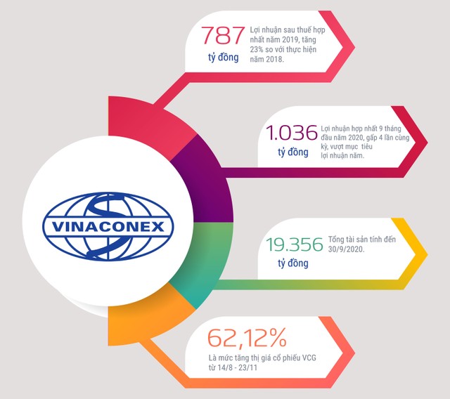 9 tháng đầu năm 2020, Vinaconex tiếp tục ghi điểm với lợi nhuận sau thuế tăng gấp 4 lần so với cùng kỳ, đạt 1.036 tỷ đồng. Như vậy, kết thúc nửa đầu năm 2020, VCG đã vượt mục tiêu lợi nhuận của cả năm 2020.