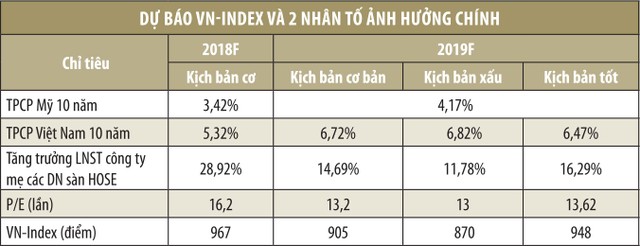 CTS đã xây dựng mô hình đo chỉ số VN-Index với 2 nhân tố chính là lãi suất và tốc độ tăng trưởng lợi nhuận (xem bảng). Nhằm lượng hóa biến động lãi suất, CTS đo thông qua biến động lãi suất giao dịch thứ cấp lãi suất trái phiếu Chính phủ 10 năm.