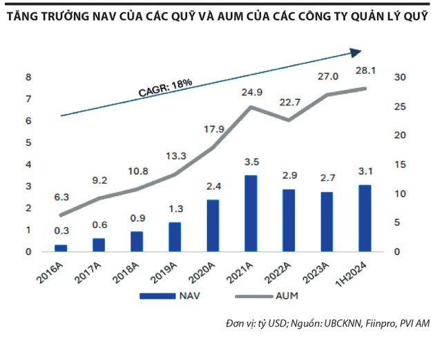 Đặc biệt, nhu cầu đầu tư với loại hình quỹ mở của người dân được kỳ vọng sẽ tăng nhanh trong thời gian tới, được thúc đẩy bởi hai yếu tố chính. Một là, nhu cầu quản lý tài sản có xu hướng tăng đáng kể khi GDP bình quân đầu người đạt 5.000 - 10.000 USD. Ở mức thu nhập này, sau khi đáp ứng các nhu cầu thiết yếu, cá nhân có thể tích lũy tài chính và tập trung vào việc tích sản thông qua các khoản đầu tư. Hai là, dư địa để phát triển các loại hình đầu tư gián tiếp là rất lớn, khi tỷ lệ tài sản được quản lý (AUM) mới chỉ đáp ứng chưa đến 10% tài sản trong dân và AUM/GDP quốc gia hiện nay chỉ đạt 6,44%, thấp hơn nhiều nước trong khu vực.