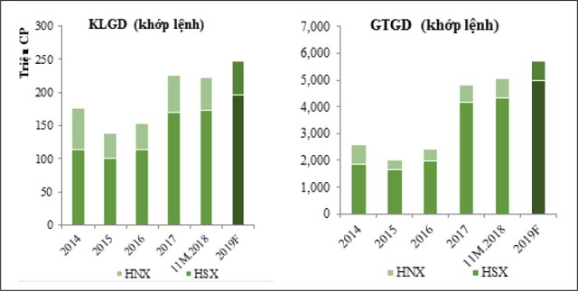 Về thị trường cổ phiếu, năm 2018, số doanh nghiệp nhà nước cổ phần hóa gắn với đưa cổ phiếu lên sàn còn hạn chế, nên năm 2019, khối doanh nghiệp này sẽ tiếp tục phải “thực hiện nhiệm vụ” bán vốn Nhà nước và lên sàn, khiến quy mô thị trường chứng khoán có khả năng sẽ tiếp tục tăng mạnh.