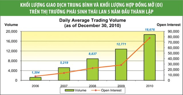 Trong khi đó, tại thị trường phái sinh Thái Lan, sau 5 năm đi vào hoạt động kể từ năm 2006, khối lượng giao dịch bình quân của tất cả các sản phẩm phái sinh (trong đó hợp đồng tương lai chỉ số chiếm hơn 55%) cũng chỉ đạt tương đương khối lượng giao dịch hiện tại của các hợp đồng VN30F.