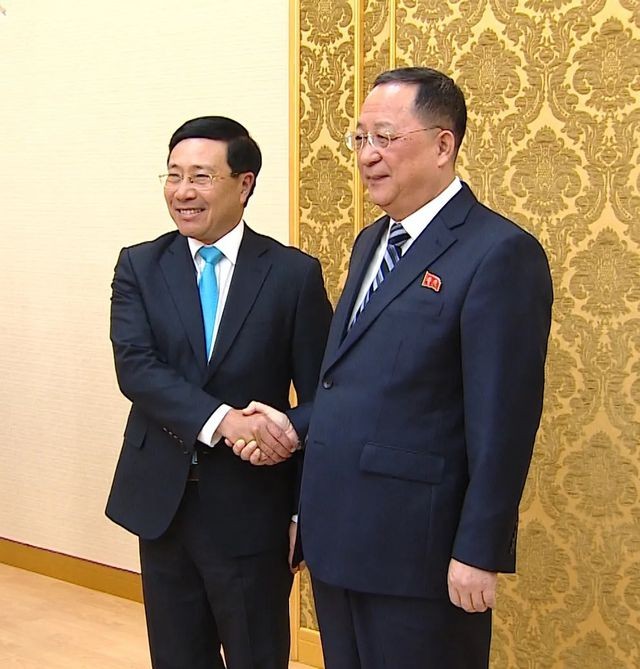 Bộ trưởng Ngoại giao Triều Tiên Ri Yong Ho bày tỏ vui mừng được gặp lại Phó Thủ tướng, Bộ trưởng Ngoại giao Phạm Bình Minh tại Bình Nhưỡng; nhấn mạnh mong muốn thúc đẩy quan hệ hai nước phát triển mạnh mẽ hơn nữa, nhất là trong năm 2020 dịp kỷ niệm 70 năm hai nước thiết lập quan hệ ngoại giao; nhất trí trao đổi các biện pháp tăng cường quan hệ song phương phù hợp với tình hình mới; cảm ơn lập trường và những nỗ lực của Việt Nam trong việc thúc đẩy tiến trình đối thoại vì hòa bình, an ninh, hợp tác và phát triển trên Bán đảo Triều Tiên.