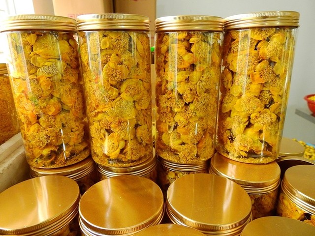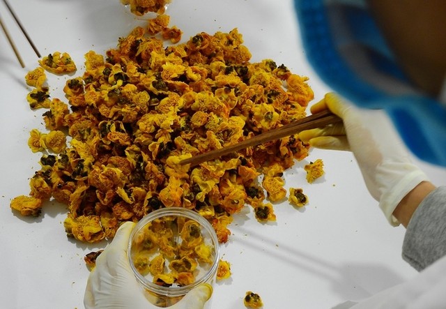 Trà hoa vàng kết nụ vào tháng 6 âm lịch, đến cuối tháng 10 bắt đầu cho thu hoạch; giá mỗi kg hoa sấy khô là 15 triệu đồng.