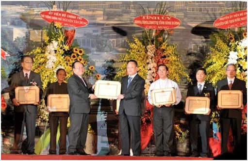 Ông Nguyễn Cảnh Hồng, Tổng giám đốc Eurowindow nhận bằng khen của lãnh đạo tỉnh Bình Dương vì những nỗ lực trong quá trình triển khai thi công nhằm đảm bảm chất lượng và tiến độ công trình.