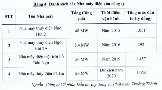 Như vậy, nếu so với hai doanh nghiệp đang niêm yết là CTCP Bamboo Capital (BCG) tỷ lệ này là 138%, CTCP Điện Gia Lai (GEG) tỷ lệ là 144% đang thấp hơn so với Trường Thành Group. Chưa kể tới so với với các doanh nghiệp có dự án điện như CTCP Tập đoàn Hà Đô (HDG) …