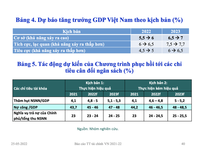 TS. Lực cho rằng, năm 2022, kinh tế thế giới dự báo sẽ tiếp tục phục hồi nhưng sẽ chậm hơn (tăng trưởng 3,2 - 3,6%). Tuy nhiên tại Việt Nam, với tiến trình mở cửa nền kinh tế, kiên định chiến lược “sống chung an toàn với Covid-19”, nhiều giải pháp để giảm thiểu tác động tiêu cực từ xung đột Nga - Ukraina và kiểm soát đà tăng giá cả, lạm phát… dự báo sẽ phục hồi tốt hơn trong năm 2022. Cụ thể, kinh tế Việt Nam có thể tăng trưởng 5,5 - 6% (kịch bản cơ sở) và cao hơn trong năm 2023. Tuy nhiên, lạm phát tăng khá mạnh, có thể lên mức 3,8 - 4,2% năm 2022 và duy trì mức 4% năm 2023.