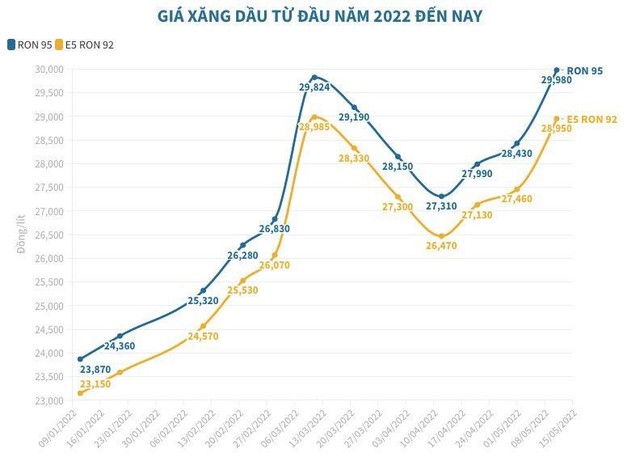 Áp lực thứ hai là giá nguyên nhiên vật liệu tăng cao. TS. Nguyễn Bích Lâm cho rằng, giá xăng dầu và nhóm nguyên vật liệu công nghiệp đang phụ thuộc nhập khẩu tăng cao, tác động mạnh vào lạm phát. Giá xăng dầu đã tăng mạnh từ năm 2021 đến nay khiến cho kinh tế ngày càng khó khăn.