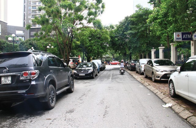 Tất cả xe máy, ô tô không cách nào khác là tràn ra các bãi gửi ở vỉa hè, lòng đường. Do được thiết kế từ sớm, hầu hết các tòa nhà ở đây chỉ có một tầng hầm làm bãi đỗ, chỉ tính nhu cầu của cư dân đã không đủ chưa nói đến hàng loạt văn phòng, nhà hàng song hành tồn tại.