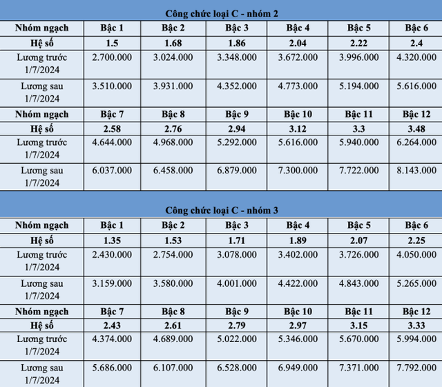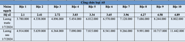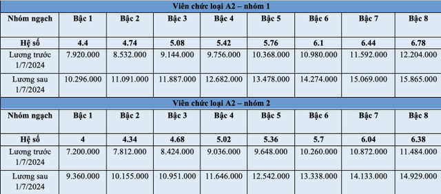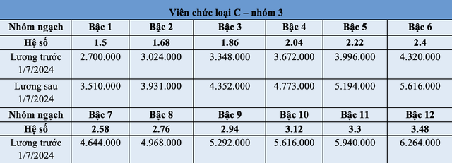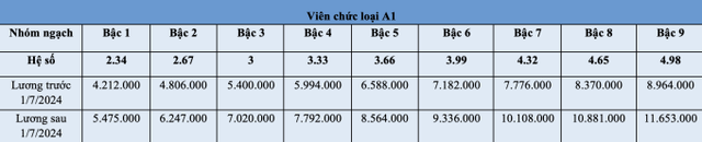 Bảng lương của viên chức trước và sau 1/7 như sau: