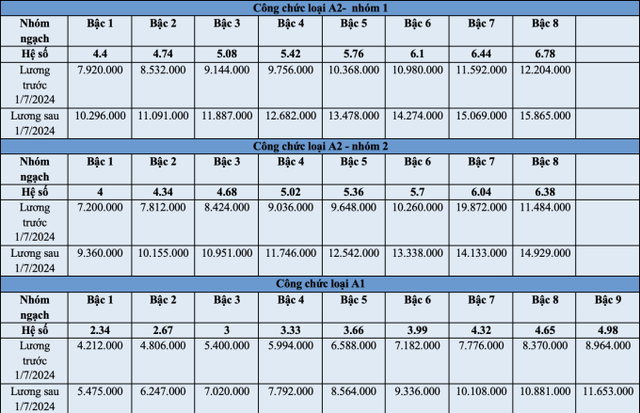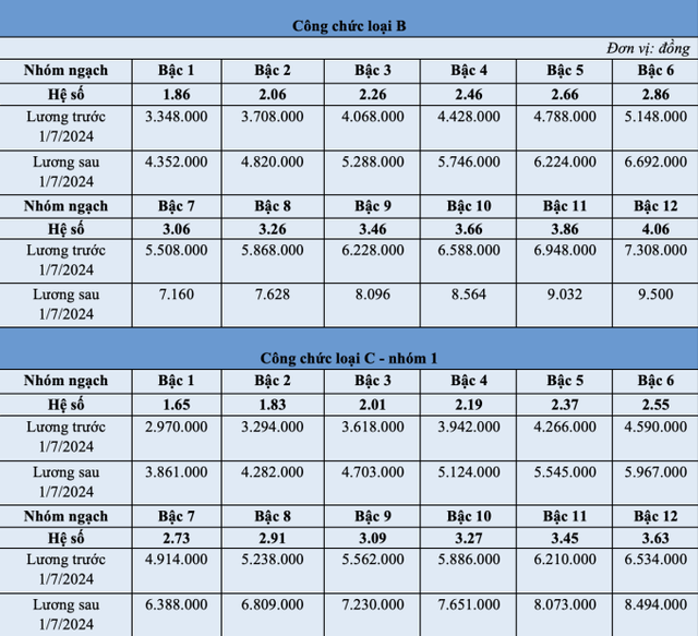 Bảng lương của cán bộ, công chức trước và sau 1/7 như sau: