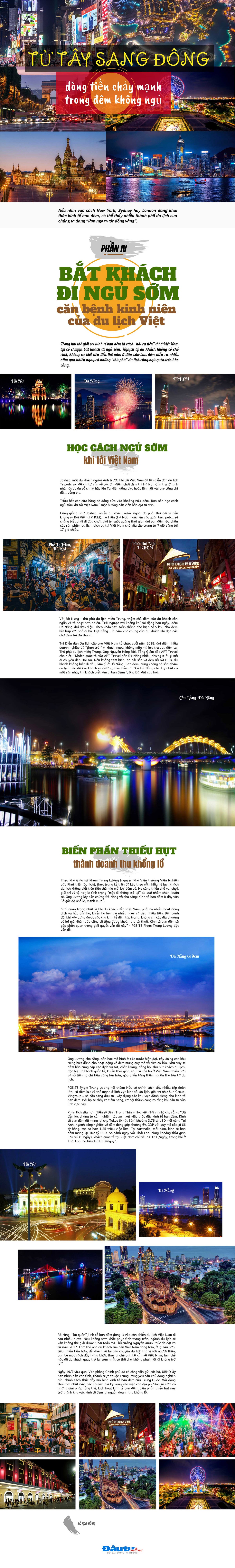 Trong khi thế giới coi kinh tế ban đêm là cách “hái ra tiền” thì ở Việt Nam lại có chuyện bắt khách đi ngủ sớm. Nghịch lý du khách không có chỗ chơi, không cả biết tiêu tiền thế nào, ở đâu vào ban đêm diễn ra nhiều năm qua khiến ngay cả những “thủ phủ” du lịch cũng ngủ quên trên kho vàng.