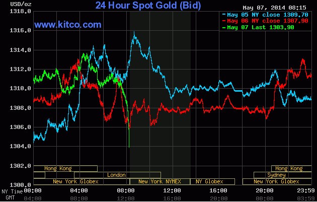 Tuy nhiên, đến 7h15 tối nay, giá vàng giao ngay thế giới bất ngờ giảm mạnh còn 1.303,9 USD/ounce (chưa rõ nguyên nhân).