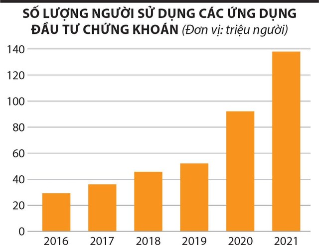 Theo Business of Apps, số lượng người dùng các ứng dụng đầu tư trong năm 2021 đạt hơn 130 triệu người, tăng 49% so với năm trước đó. Các ứng dụng đầu tư đã tạo ra doanh thu 22,8 tỷ USD năm 2021, trong đó, Robinhood là ứng dụng nổi bật nhất.