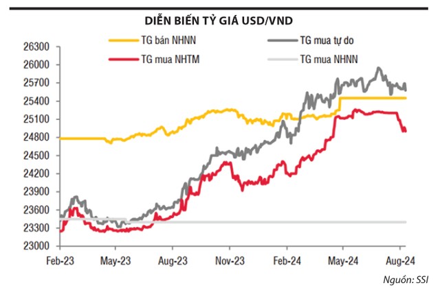 Thứ hai, trong 7 tháng đầu năm 2024, xuất khẩu ròng của Việt Nam đạt 14,08 tỷ USD và vốn FDI liên tục lập kỷ lục, với 12,55 tỷ USD đã được giải ngân. Ngoài ra, kiều hối về Việt Nam tiếp tục tăng (riêng TP.HCM, lượng kiều hối chuyển về đạt gần 5,2 tỷ USD trong nửa đầu năm nay, tăng 19,5% so với cùng kỳ năm ngoái), góp phần giúp giảm tình trạng căng thẳng thanh khoản USD trên thị trường, khiến USD điều chỉnh.