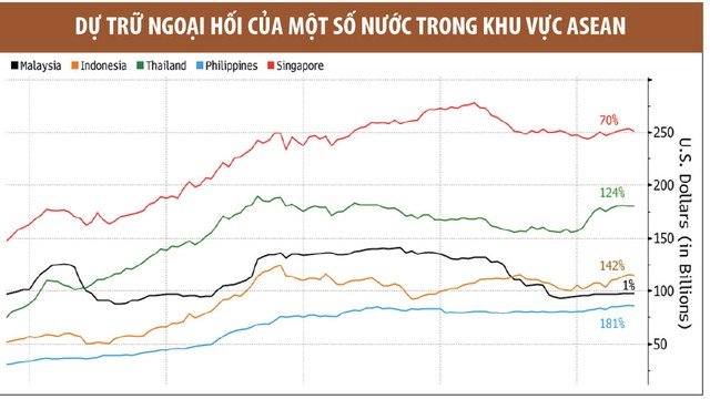 Quỹ dự trữ ngoại tệ của Philippines, Indonesia, Thái Lan tăng gần gấp đôi so với cách đây 1 thập kỷ, trong khi Malaysia ít có sự thay đổi.