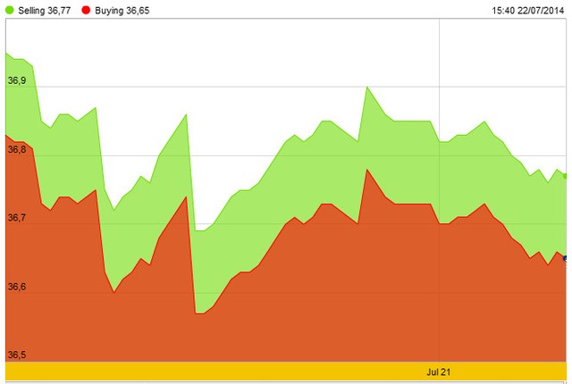 Bất ổn ở Trung Đông và Ukraine đã giúp vàng hồi lại 8,7% trong năm nay. Các lãnh đạo Mỹ và châu Âu đã phát đi thông điệp rằng, Tổng thống Nga Putin đang có nguy cơ tự cô lập mình với thế giới sau khi máy bay chở khách Malaysia bị rơi ở Ukaine bởi một quả tên lửa được cho là được mang từ Nga sang. Ngoại trưởng Mỹ John Kerry đã tổ chức cuộc gặp với các quan chức Ai Cập để tìm kiếm một giải pháp ngừng bắn ở dải Gaza, khi xung đột nơi đây đang bước vào tuần thứ ba.