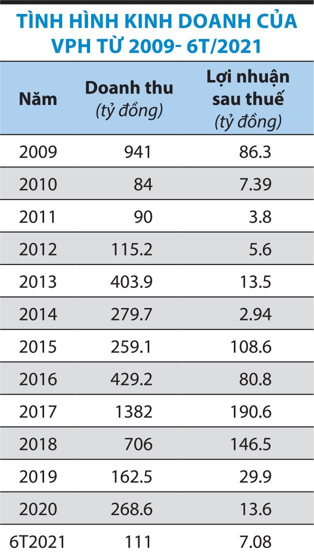 Cổ phiếu VPH chào sàn chứng khoán ngày 9/9/2009 với giá 36.000 đồng/cổ phiếu và có 28 phiên liên tiếp tăng trần, đạt đỉnh 124.000 đồng/cổ phiếu vào ngày 16/10/2009. Tròn hai năm sau ngày chào sàn, thị giá cổ phiếu rơi về 10.400 đồng/cổ phiếu. Suốt 10 năm sau đó, cổ phiếu này đì đẹt ở dưới mệnh giá, có thời điểm rơi xuống chỉ còn 3.310 đồng/cổ phiếu (ngày 30/3/2020).