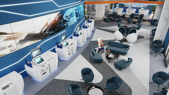 Đặc biệt, thông qua sự liên kết với các ngân hàng, hệ thống văn phòng KSFinance được tích hợp các chức năng phục vụ giao dịch tài chính, với 100% được trang bị hệ thống máy STM hiện đại, tân tiến, đóng vai trò như một quầy giao dịch số, giúp khách hàng thực hiện các giao dịch ngân hàng như mở tài khoản, chuyển tiền, rút tiền, thanh toán hóa đơn...