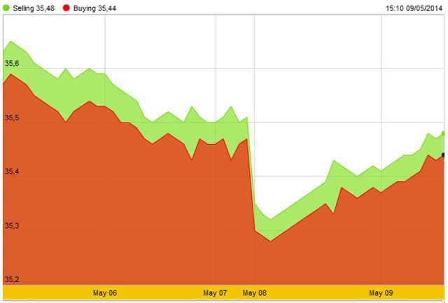Chủ tịch Fed Janet Yellen vừa phát biểu trong tuần này rằng, sức mạnh của nền kinh tế Mỹ cho phép Ngân hàng Trung ương giảm nhịp mua tài sản ở một mức độ phù hợp, mặc dù sự kích thích là vẫn cần thiết. Đồng USD đã tăng trở lại từ mức thấp nhất kể từ năm 2011 so với đồng euro sau khie Chủ tịch Ngân hàng Trung ương châu Âu Mario Draghi nói hôm qua là Ngân hàng có thể sẽ nới lỏng tiền tệ thêm trong tháng 6.
