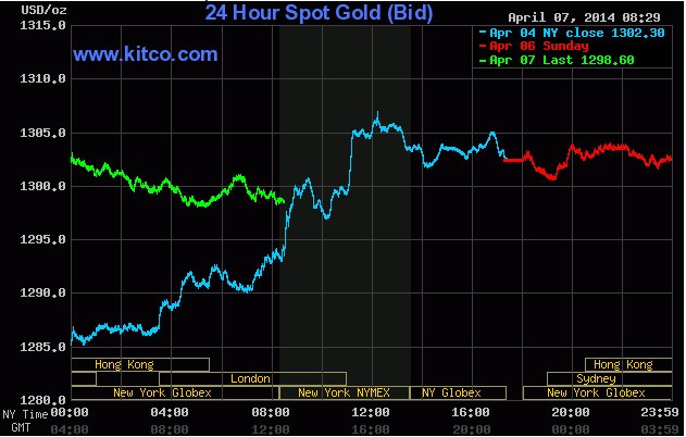 Giá vàng giao ngay đã giảm 0,3% xuống còn 1.299,68 USD/ounce vào lúc 9h01 sáng nay, trên sàn London. Giá vàng giao tháng 6 giảm 0,3% còn 1.299,90 USD/ounce trên sàn Comex, New York. Khối lượng hợp đồng tương lai trên sàn Comex trong phiên giao dịch gần nhất thấp hơn 47% so với mức trung bình 100 ngày.