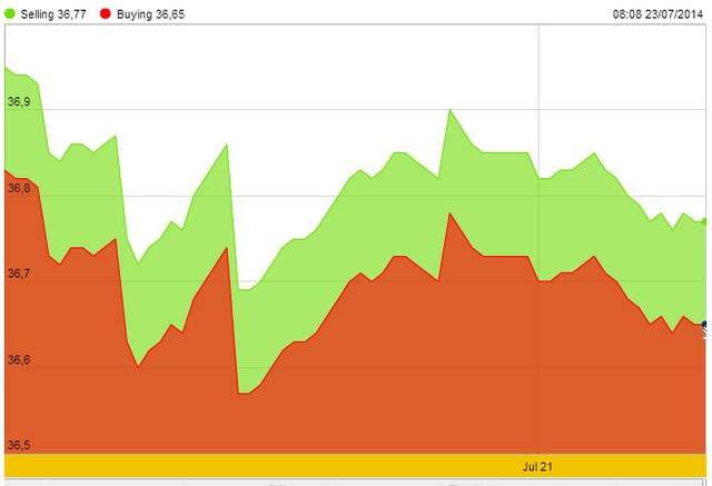 Hôm nay, giá USD trên cả thị trường tự do và ngân hàng đã tăng trở lại đặc biệt trên thị trường ngân hàng. Cụ thể, giá USD tự do tăng 10 đồng lên 21.220 - 21.240 đồng/USD; giá USD do Vietcombank niêm yết tăng 20 đồng lên 21.210 - 21.260 đồng/USD.