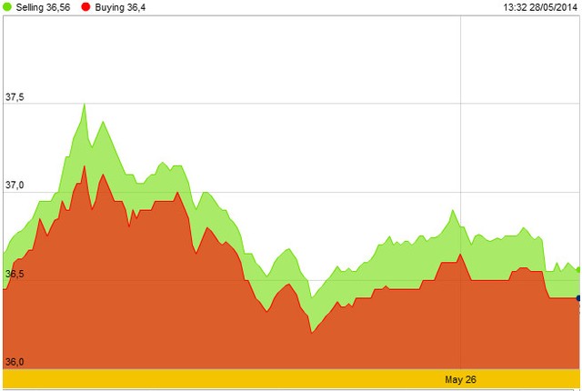 Giá USD trong nước hôm nay bất ngờ tăng mạnh trên cả thị trường tự do và ngân hàng. Cụ thể, giá USD tự do tăng mạnh 30 đồng ở cả giá mua và giá bán so với hôm qua lên 21.300 – 21.320 đồng/USD, cao nhất kể từ ngày 3/8/2013. Giá USD do Vietcombank tăng 150 đồng lên 21.130 – 21.180 đồng/USD, cao nhất kể từ ngày 9/5/2013.