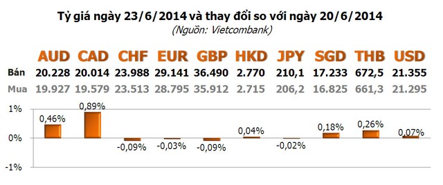 Với các ngoại tệ khác, chỉ CAD và AUD tăng đáng kể với lần lượt 0,89% và 0,46%.