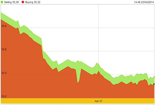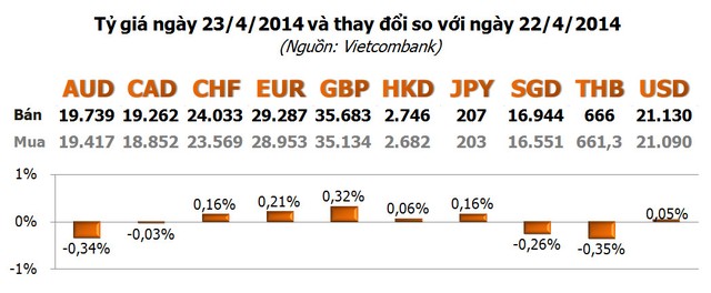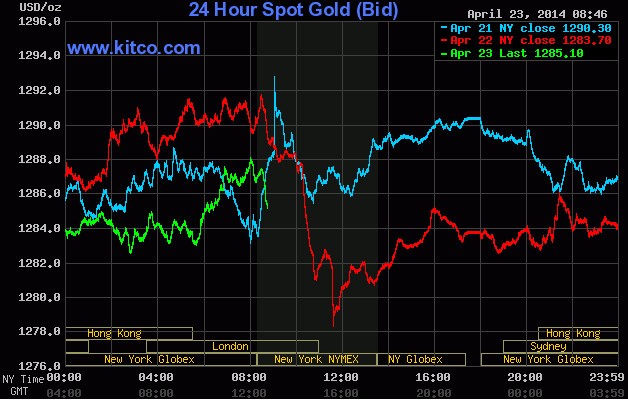 Giá vàng đã điều chỉnh trong những tuần gần đây, song vẫn cao hơn 6,9% so với cuối năm 2013. Giá đạt mức cao nhất năm trong tháng 3 khi căng thẳng ở Ukraine thúc đẩy nhu cầu vàng trú ẩn. Ukraine đã xem xét khôi phục lại các hoạt động bình thường để rút binh lính khỏi các thành phố miền Đông theo một thỏa thuận với Nga nhằm giảm căng thẳng ở khu vực này.