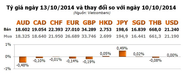 Các ngoại tệ khác, hầu hết cũng không thay đổi đáng kể, ngoại trừ JPY tăng 0,49% và AUD giảm 0,48%.