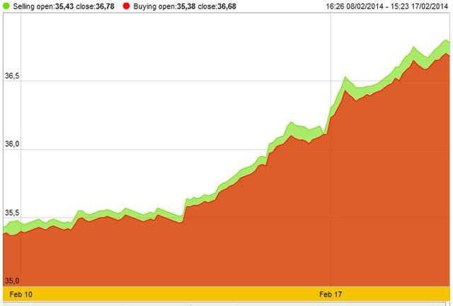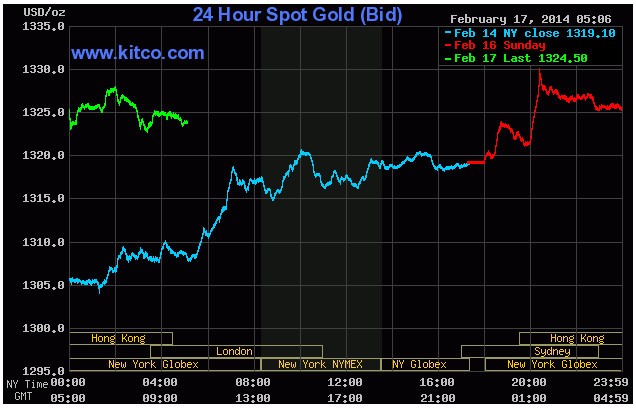Sự trở lại của các nhà đầu tư đối với kim loại quý sau khi giá sụt giảm mạnh năm 2013 đang lái giá tăng đợt dài nhất kể từ năm 2011. Sản lượng của các nhà máy ở Mỹ đã giảm bất ngờ trong tháng 1 và cổ phiếu cũng như đồng tiền của các thị trường mới nổi cùng đang yếu đi là những nhân tố đang hỗ trợ vàng với vai trò là tài sản thay thế.