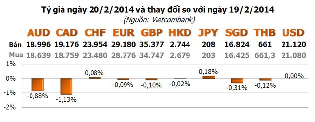 Các ngoại tệ khác đã chuyển sang chiều giảm nhiều hơn và cường độ mạnh hơn, dẫn đầu là CAD với -1,13%; tiếp đến là AUD với -0,88%; SGD với -0,31%. Các ngoại tệ khác tăng/giảm không đáng kể.