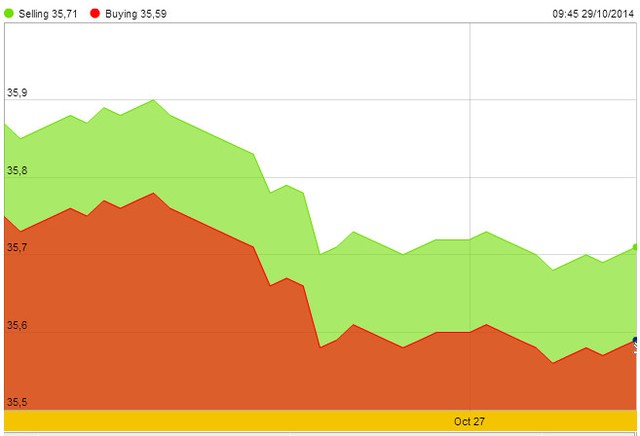 Fed nói hồi tháng 9 rằng, Quỹ có thể sẽ kết thúc chương trình nới lỏng định lượng vào tháng này, nếu nền kinh tế tiếp tục cải thiện. Niềm tin người tiêu dùng Mỹ đã tăng lên mức cao trong vòng 7 năm trong tháng này, vượt qua cả mức dự báo lạc quan nhất trong một cuộc khảo sát các nhà kinh tế của Bloomberg.
