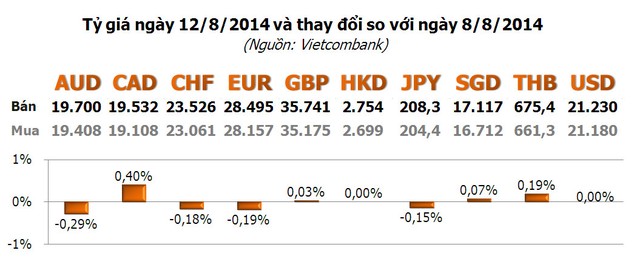 Với các ngoại tệ khác, chỉ có THB, JPY, SGD và GBP biến động đáng kể, trong đó, THB và SGD lần lượt tăng 0,63% và 0,31%; JPY và GBP tương ứng giảm 0,45% và 0,20%.