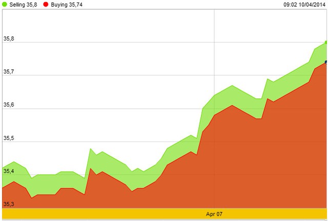 Trong nước, đầu giờ sáng nay, giá vàng SJC cũng tăng 60.000 đồng/lượng lên 35,74 - 35,80 triệu đồng/lượng.